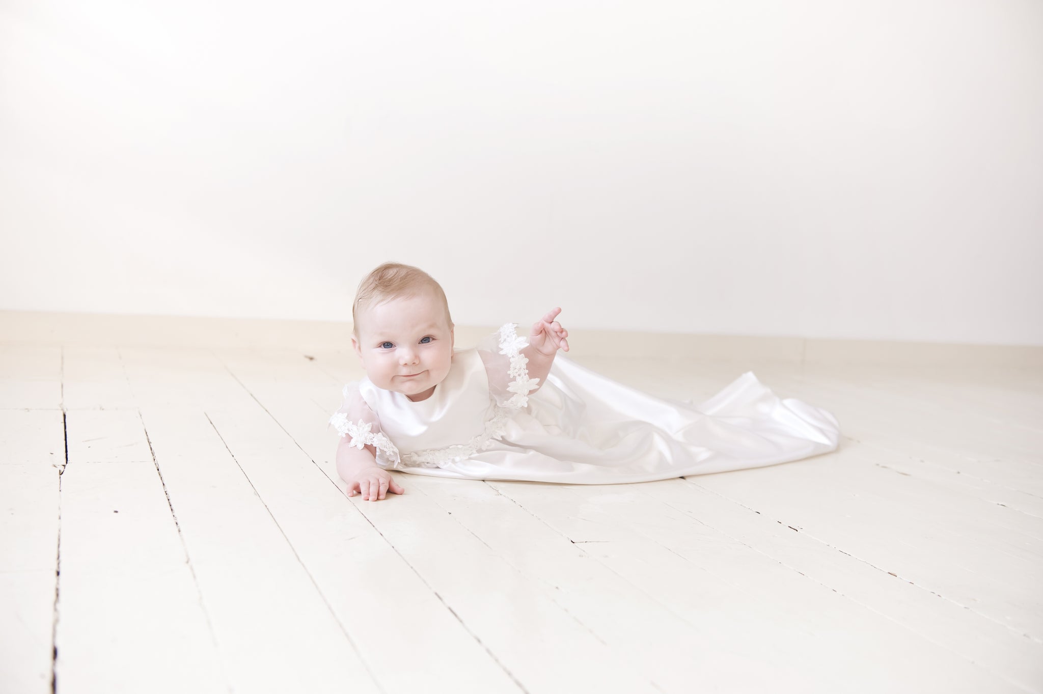 Det enkle design og de rene linjer giver et tidløst og elegant udtryk, perfekt til en højtidelig dåbsdag.